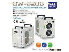 S&A CW-5200 is refrigeration type industrial water chiller of 1400W cooling capacity and the thermoelectric control in ±0.3℃ precision. It is popular for its 2 temperature control modes as constant temperature and intelligent temperature control. Under intelligent mode, the water temperature is adjusted according to ambient temperature. With that 1 key solution, customers no longer need to worry about the condensate water for temperature change and extend laser tube life.